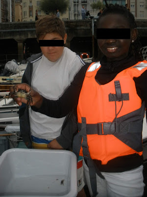 Al llegar a puerto todavía nos dio tiempo a enseñarles otra pesca", la de los cangrejos: