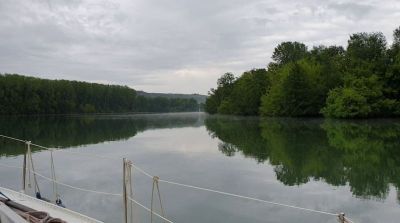Al día siguiente llegamos a los cañones del Rhin. Aquí el río se estrecha para pasar entre montes y la velocidad de la corriente se dispara. Llegamos a tener picos de once nudos. Cuando me acuerdo de los días de sufrimiento para hacer diez millas en el Doubs y ahora hacemos la misma distancia en una hora y sin ningun motivo de preocupación. Por fin el viaje parece que gana momento y llegar al báltico ya no parece tanto una quimera.