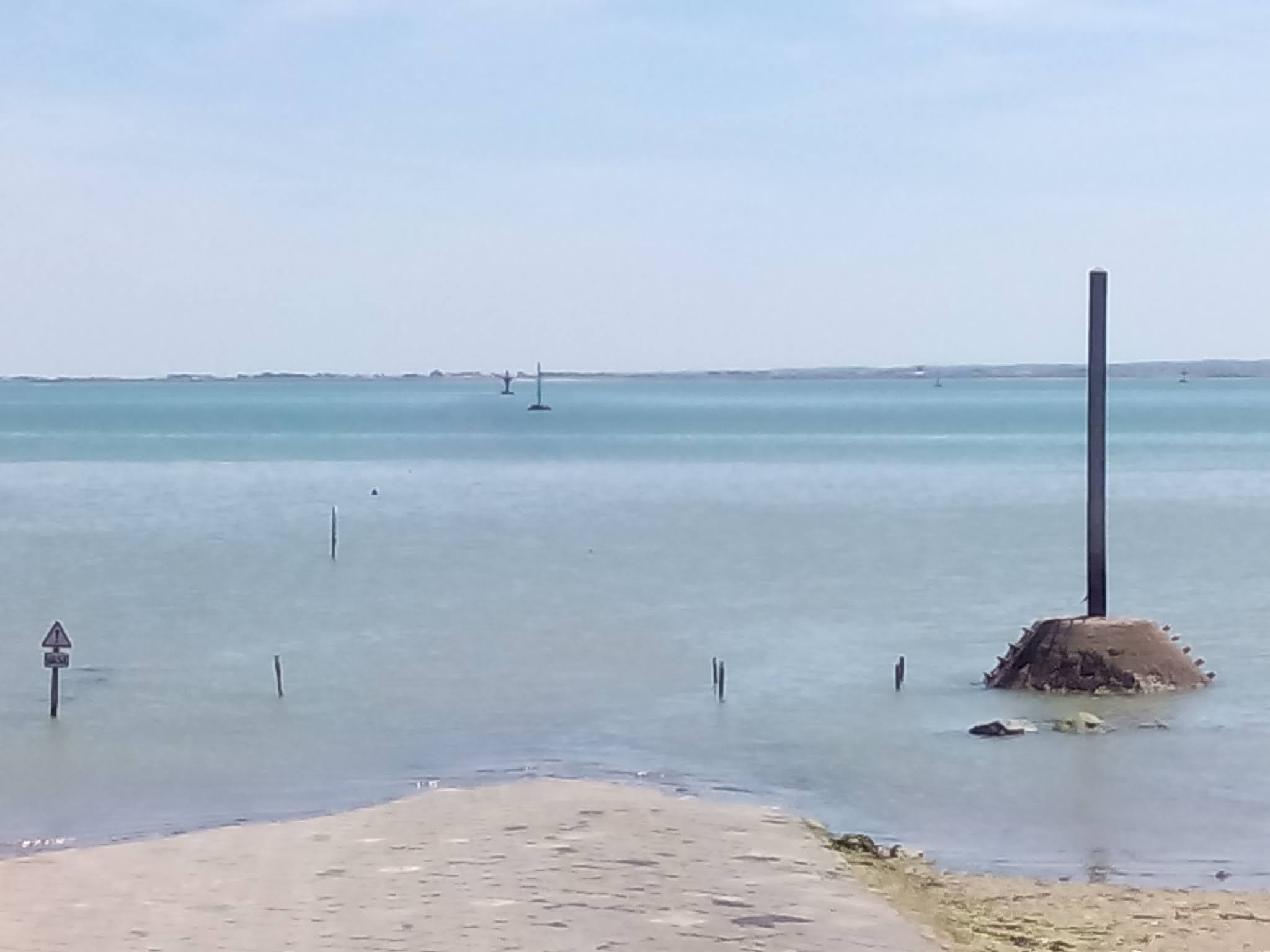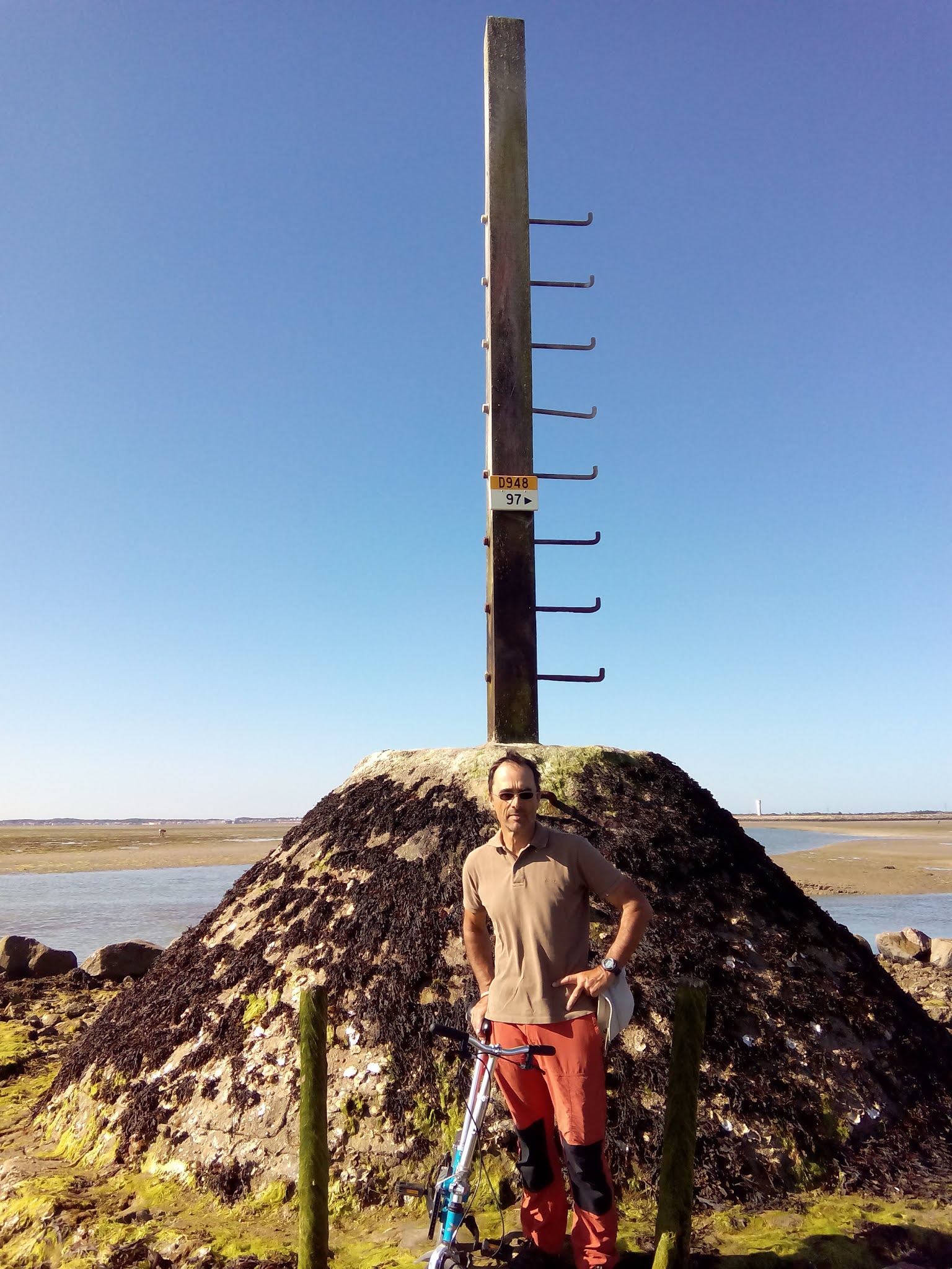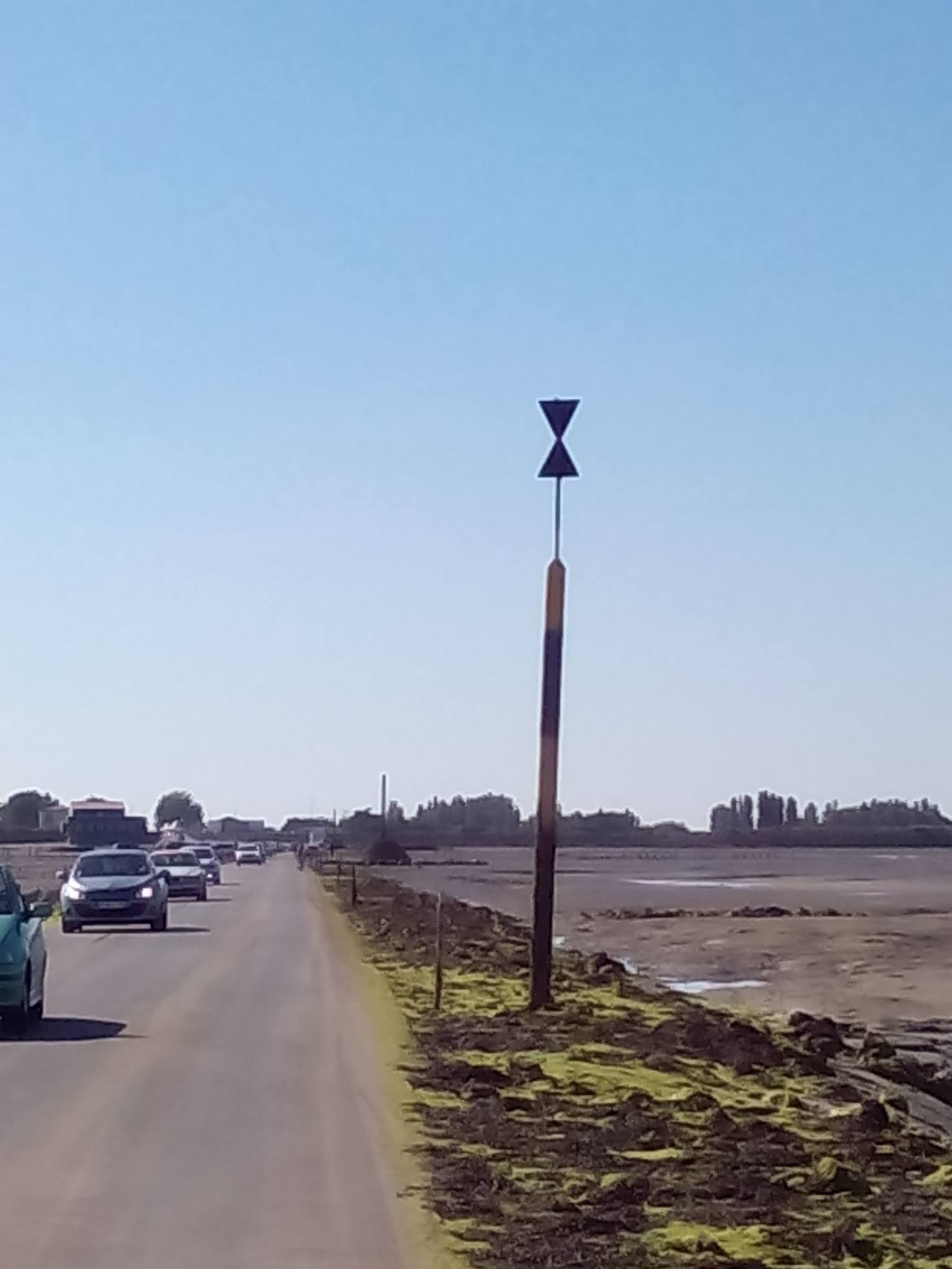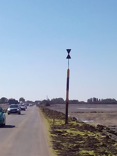 En la navegación a Bretaña con el Corto Maltés uno de los sitios más curiosos de conocer fue el paso de Gois (lo conté en la entrada del blog de 29-6-15). Es un tramo de la carretera departamental nº 948 que en pleamar está cubierto por el mar y cuando baja la marea queda expuesto al aire y se puede circular por él, y que une la isla de Noirmoutier con el continente. Se tiene conocimiento de este paso desde 1700 aunque se le han ido haciendo mejoras progresivas. En 1840 se estableció una línea regular de paso con carromatos tirados por caballos, en 1924 se hicieron las rampas de acceso y se pavimentó la calzada, y en 1939 se asfaltó. Actualmente está en algunos trozos pavimentado y en otros asfaltado.