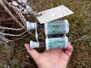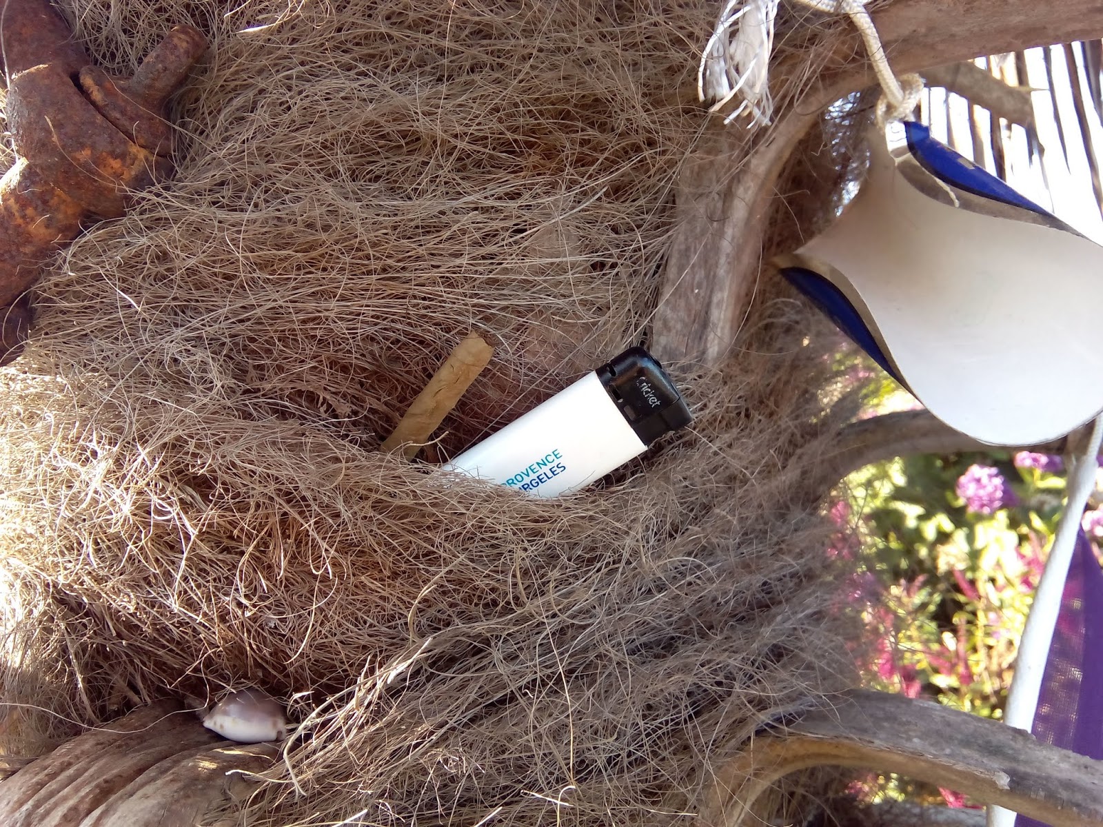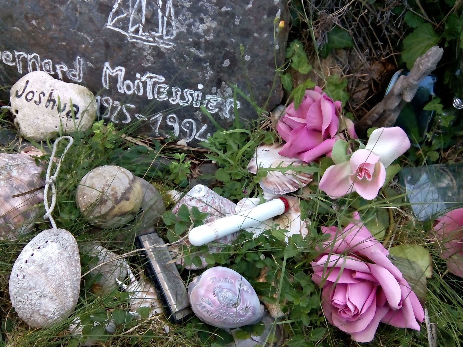 Nada más. Entre tanto mármol aquella tumba era el mejor homenaje posible a un personaje modesto como él. Se veía que esa tumba había sido un lugar de peregrinación de sus fans, que le habían ido dejando regalos modestos pero llenos de significado sentimental y relacionados con el mundo marítimo. Había allí, esparcidos por el suelo y colgados de la palmera, anclas, prismáticos, caracolas grabadas, una armónica, grilletes, cornamusas, puros y cigarrillos con su mechero (Bernard era un fumador empedernido y claro, murió de cáncer de pulmón), collares hechos de conchas, un farol de queroseno, poleas, recortes de fibra de vidrio de reparaciones hechas en veleros, tallas de madera, una botellita con agua del Cabo de Hornos, etc.: