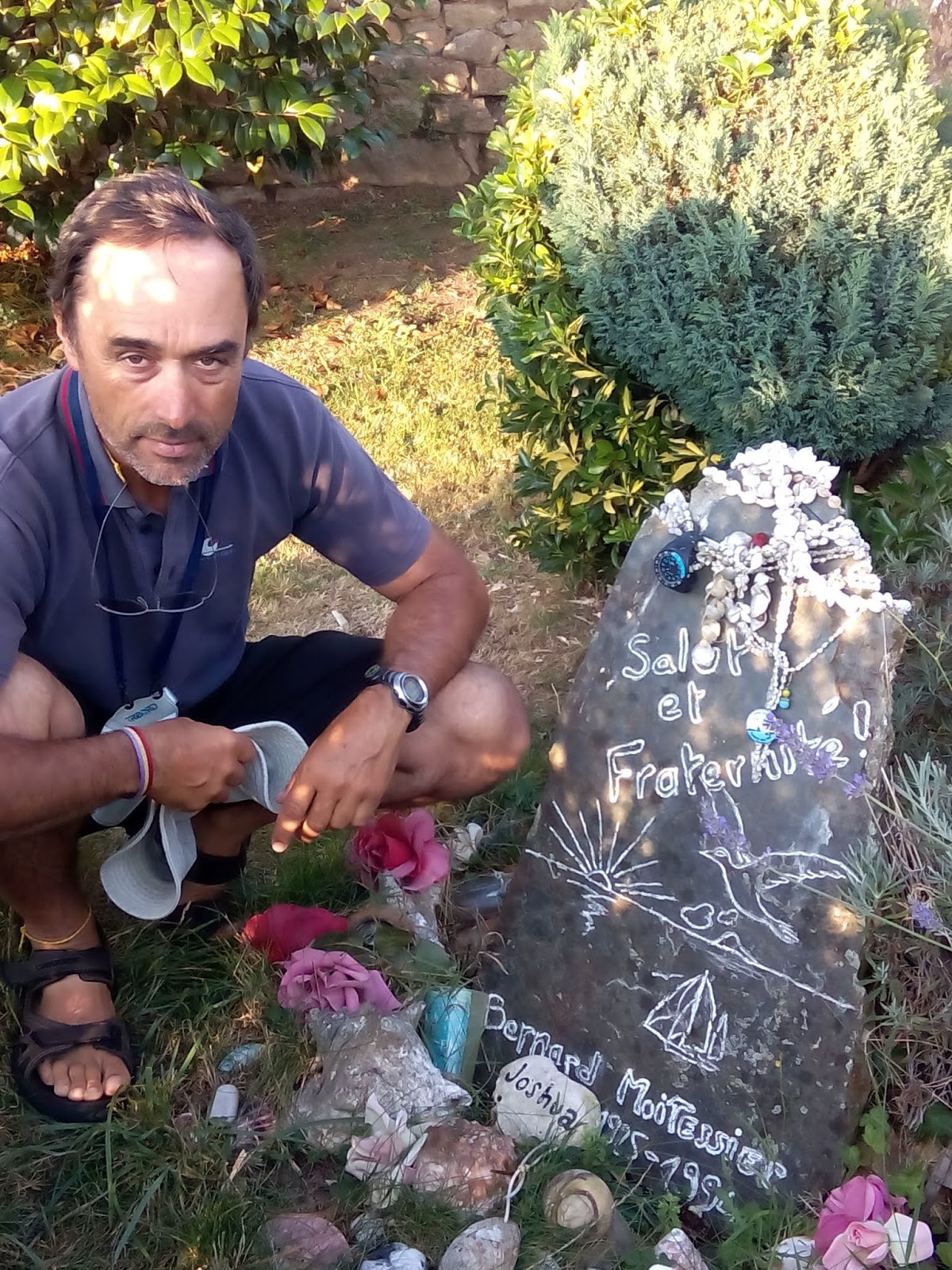 Bernard había nacido en Indochina cuando era colonia francesa pero su última compañera, Véronique, le hizo descubrir el Sur de Bretaña, región de la que se quedó prendado y donde quiso que le enterraran. Bernard, que había recorrido todo el mundo, dijo en uno de sus libros: “Véronique me hace descubrir el Sur de Bretaña. ¡Señor, qué hermosa es esta región... un país de luz!”. Y en otro libro: “Todavía no he ido al Pacífico, al archipiélago de las Tuamotú... Ignoro por el momento sobre qué tierra dejaré un día mis huesos... Desde mi estancia en Santa Elena he soñado con esta isla tranquila, bella y buena, y en sus habitantes...”. Pues al final no dejó sus huesos en ninguno de los paraísos que imaginaba sino allí, en Bretaña.