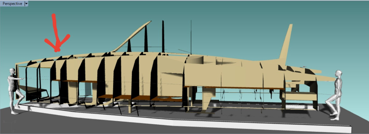 Como la cubierta no es plana, hay que dejar espacio para otros mamparos. Además se tiene que poder entrar de pie a trabajar por dentro. ![]() |