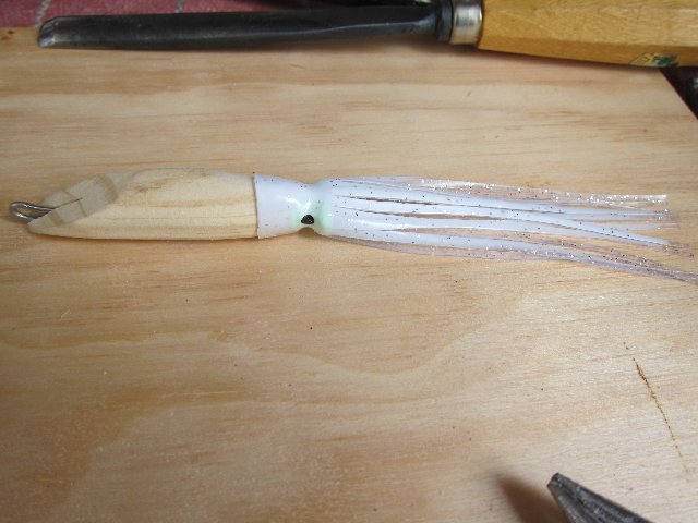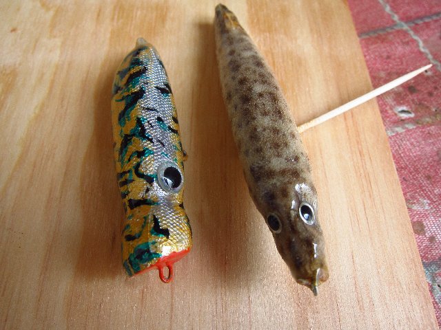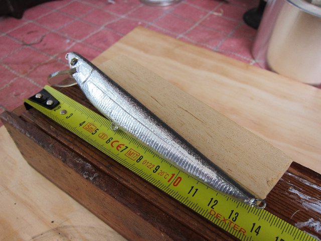 Todos van a valer pero al ser una cosa completamente manual, saldrá alguna verdadera estrella matadora de entre ellos. Antes de pintar del todo los pruebo en el agua. En una ocasión hice uno cuya forma de nadar no me convencía porque escoraba a una banda y hacía cosas raras. Mi hermano, me dijo ,no lo tires, damelo y si no pesca lo usare de llavero. No ,me lo podía creer. Ahora es su señuelo estrella. Pesca como ninguno..