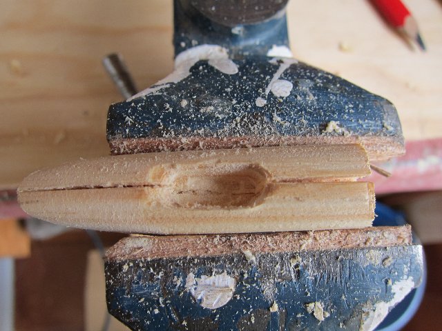 con el taladro fijado de cualquier modo a un tornillo de banco por ejemplo y una lija de 80 en la mano, se le da la forma redondeada perfecta y luego se le hace el canal enrollando la lija en el dedo