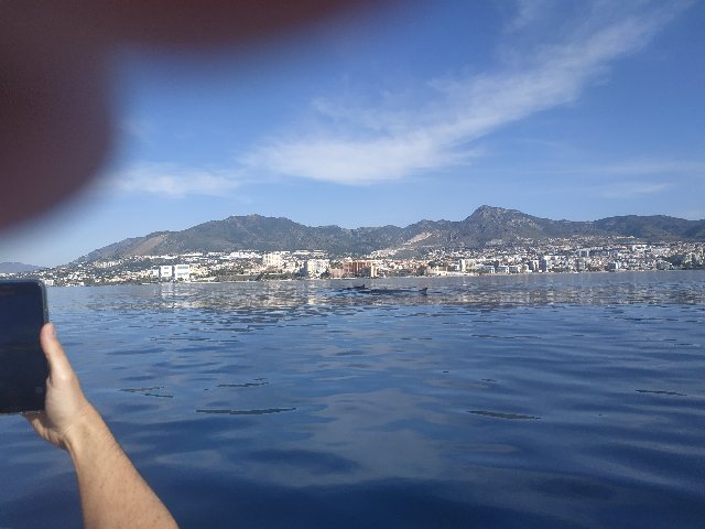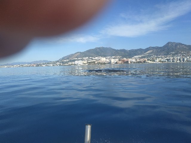 Por el charco donde me muevo no es muy común ver cetáceos grandes y menos en tan poco fondo. Unas treinta brazas. Así a ojo podrían medir entre doce y quince metros. Iban tres ejemplares