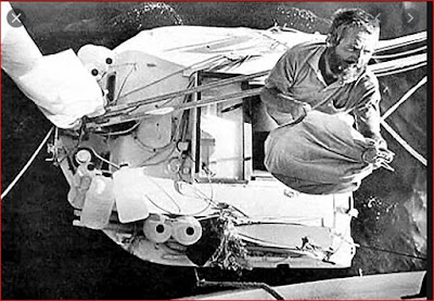 Hola navegantes. En las entradas del blog de 13 y 16 de mayo de 2020, creyendo que era una auténtica primicia, os hablé del Baluchon y su capitán, que había cruzado el Atlántico y parte del Pacífico en un velero de 4 metros. Y en las de 4-12-15 y 6-6-20 de dos marinos que iban a intentar dar la vuelta al mundo siendo mancos. Pues ahora me he enterado de que otro manco cruzó el atlántico en un velero de 1,68 metros. Hugo Vihlen, acordaos de este nombre, es un marino norteamericano al que le falta la mano derecha, que en 1968 y 1993 batió por dos veces el récord de cruzar el Atlántico en el velero más pequeño. En marzo de 1968 salió de Casablanca en un velerito de 1,8 metros, el "April Fool", y al cabo de 84 días llegó a Miami. Como carecía de motor, se acercó a 6 millas de la costa pero las corrientes, sobre todo el Gulf Strean, le devolvieron mar adentro y fue finalmente recogido por los guardacostas. El barco tenía un aparejo muy curioso,con dos botavaras en las que envergaba la vela según entrase en viento, pero no podía ceñir: Unos años más tarde, en 1993, el récord le fue arrebatado por Tom McNally, que cruzó el Atlántico en un velero de 1,63 metros, al que irónicamente había bautizado "Big C". La travesía la hizo de Lisboa a Florida, y su barco lo había construido con un armario desguazado y la escotilla con la puerta de una lavadora. Decidido a no dejarse pisar el récord, Hugo construyó en su casa otro velero sólo media pulgada (0.01 metros) más corto con el que pretendió cruzar de EEUU a Inglaterra y al que bautizó "Father's day". La primera salida para intentarlo fue abortada por los guardacostas norteamericanos, que consideraron al barco incapaz para esa navegación. Entonces Hugo decidió intentarlo desde Canadá, desde donde la distancia a Inglaterra era más corta, las corrientes más favorables y no esperaría la visita de sus compatriotas de la patrullera. Este intento también fracasó, en este caso debido a los vientos flojos y variables que encontró. Entonces volvió a su casa, recortó aún más el barco (su eslora final fue de 1,6256 metros) para el tercer intento, que fue el definitivo. La travesía hasta Inglaterra le llevó 105 días. Tuvo que dormir con las rodillas contra el pecho, despertándose cada hora para verificar su estado físico y no quedarse anquilosado. Al llegar era incapaz de andar, había perdido 15 kg, y confesó que muchas veces pensó que no volvería a ver a su familia. El "Father's Day" fue donado al National Maritime Museum de Cornwall en 2006, formando parte desde entonces de su colección. Os recuerdo que hay otro loco intentando cruzar de Canarias a Florida en un barco de 1 metro de eslora, el "Undaunted", que parece una lata de anchoas más que un barco y del que os hablé en las entradas de 10, 15 y 20 de abril de 2017, 16 de febrero de 2018 y 25 de abril de 2018. Ya lo ha intentado dos veces sin éxito y no sé si lo volverá a intentar. , Con cuidado, navegantes.