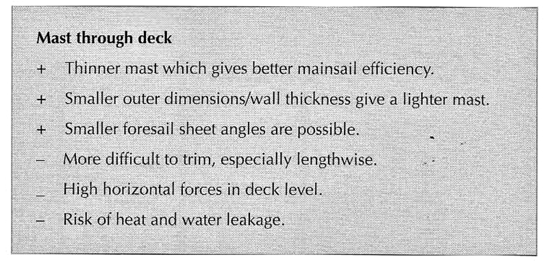 Esto no se hace ya apenas en la construcción de gran serie porque es más trabajo, lo simple es montar mástil apoyado en cubierta, meter un mástil de más (bastante más) inercia y tira millas.