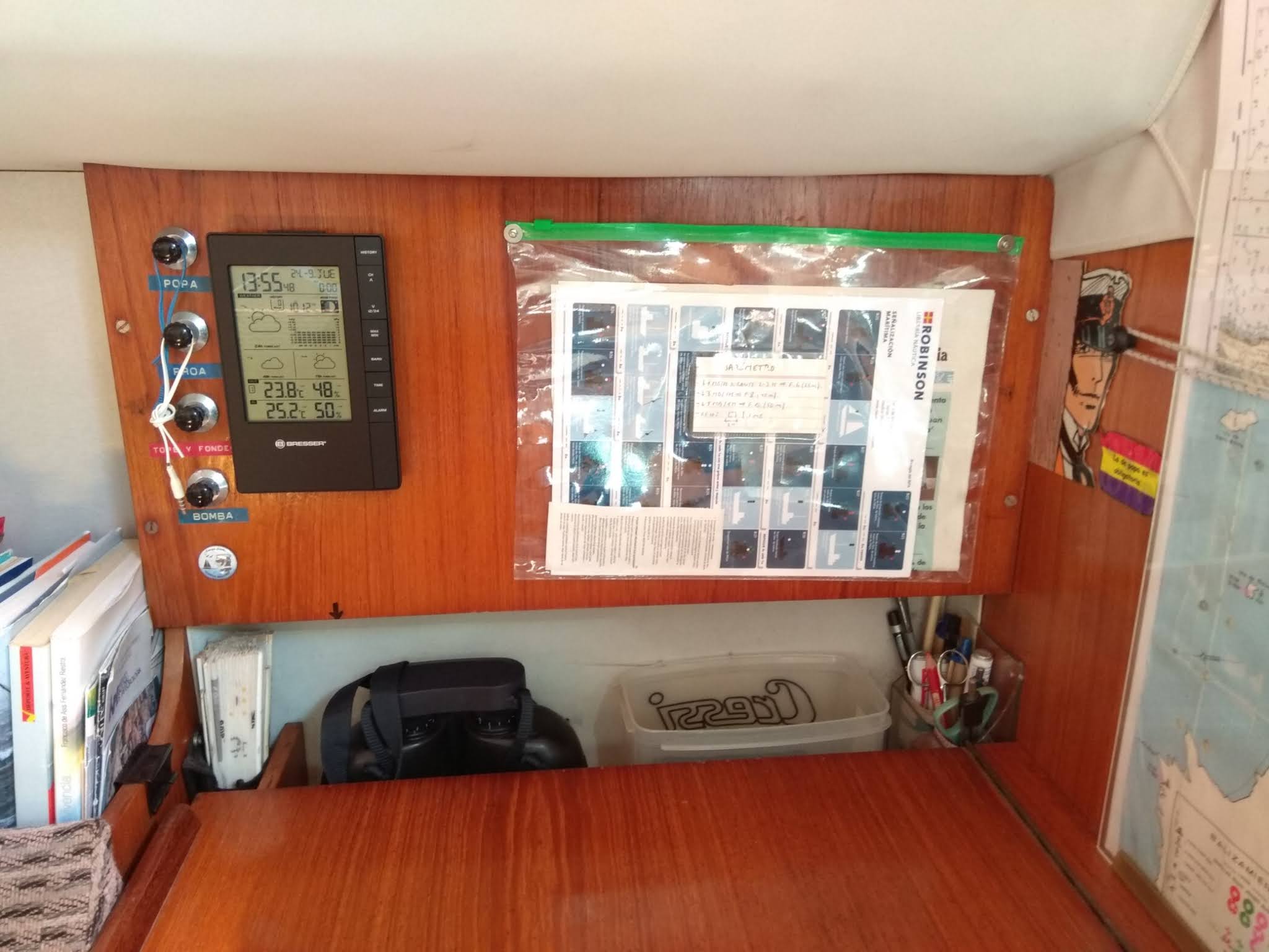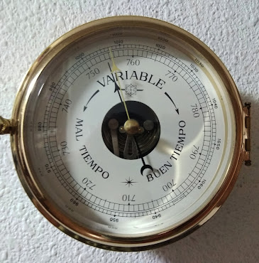 Recientemente he decidido cambiar en el Corto Maltés el barómetro analógico clásico, el de aguja, por uno digital. Tiene la ventaja de que memoriza el histórico de las presiones en una gráfica (lo que tiene especial utilidad si te has olvidado o no has podido apuntarlas) y el inconveniente de que no puedes hacer toc-toc con la uña en el cristal para ver si empieza a subir la aguja, la estampa tópica del marino preocupado:
