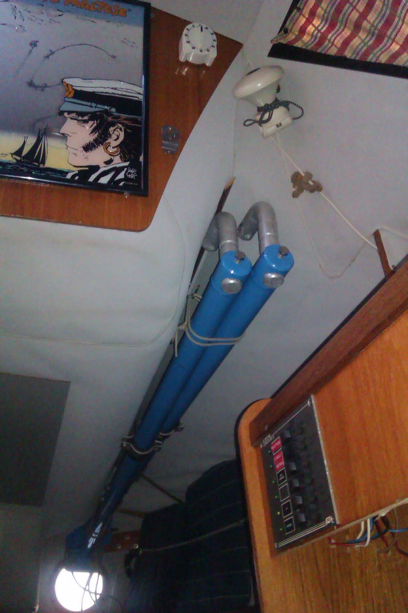 El Corto Maltés no le compré con puntales, el dueño anterior no lo varaba nunca. Cuando los necesité me puse en contacto con Jeanneau y ya no tenían, pero encontré una empresa francesa que vende unos adaptables a varios modelos de barco. Son de aluminio, telescópicos para poder variar su altura, y con varios juegos de anclajes que se adaptan a distintos barcos. Tienen hasta peldaños para poder subir a bordo por el costado, porque los veleros de quilla fija quedan varados tan altos que la escalera de popa no llega al suelo, y no puedes subir por ella. Ahora estoy de viaje y no tengo los papeles, pero cuando vuelva a Santander te haré llegar la dirección de la empresa, las fotos de los anclajes y lo que me costaron.
