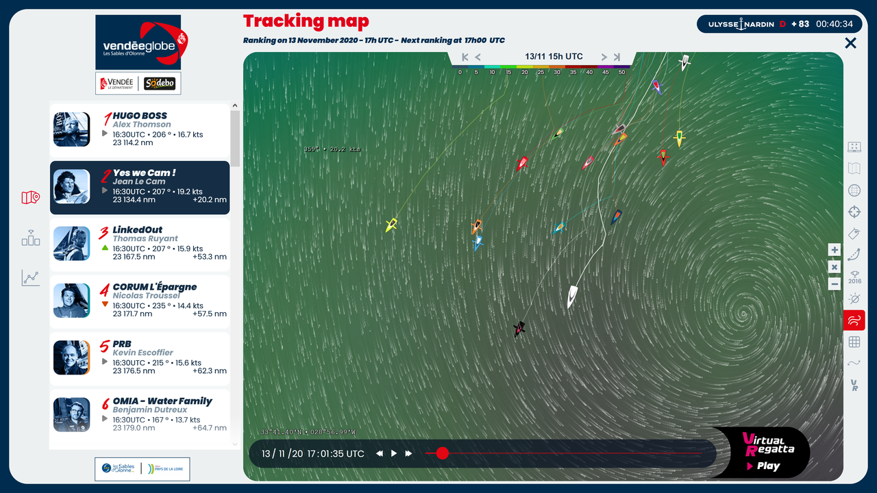 No olvidemos que Le Cam fue casí el que más al centro de la tormenta tropical Theta se metió, sólo cinco días después de la salida. Alguien dijo: arriesgando en esta tormenta no se va a ganar casi nada, en cambio se puede perder todo o casi todo... Posiblemente fuese la causa de la rotura de un fundamental refuerzo longitudinal del Hugo Boss y la causa bastante probable de su retirada (a pesar de la declarada pérdida de timón). Y con lo que sabemos ahora de Le Cam también podría haber sido la causa inicial de la deslaminación de un tramo tan importante de amura del Yes We Cam... ![]() ![]()