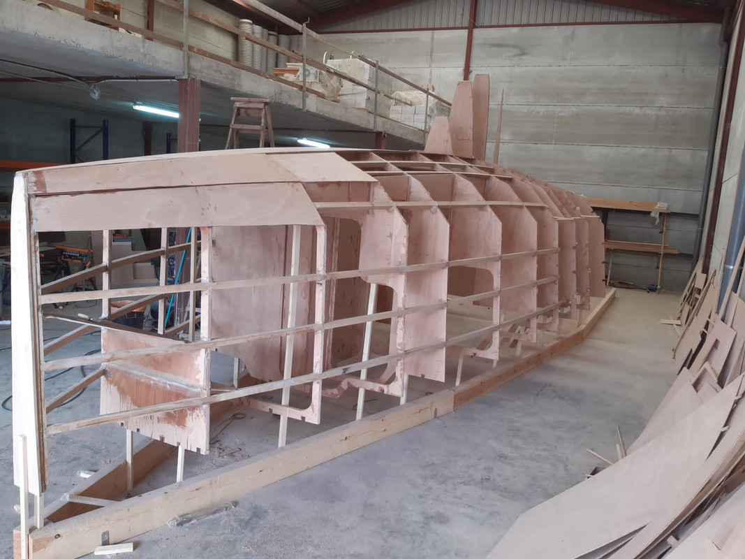 Y con el interior medio hecho, con los mamparos y divisiones principales, con la quilla, con el skeg, con la mecha, con la pala casi hecha, con el aparejo ya definido y presupuestado..