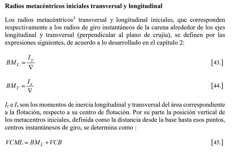 Las distintas posiciones del centro de carena al escorar el barco van definiendo un punto llamado metacentro, la distancia entre metacentro y centro de carena es el radio metacéntrico BM y su altura sobre el centro de gravedad es la altura metacéntrica GM, que es lo que nos va a dar idea de la estabilidad que tiene el barco.