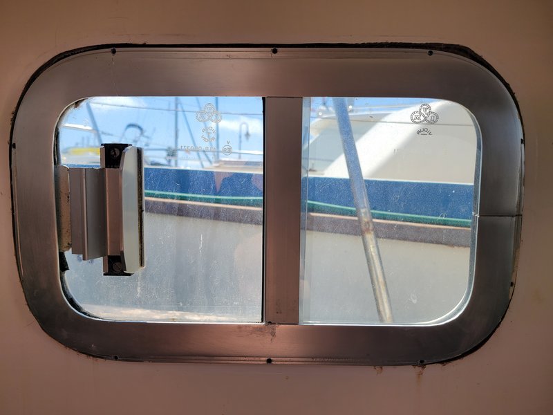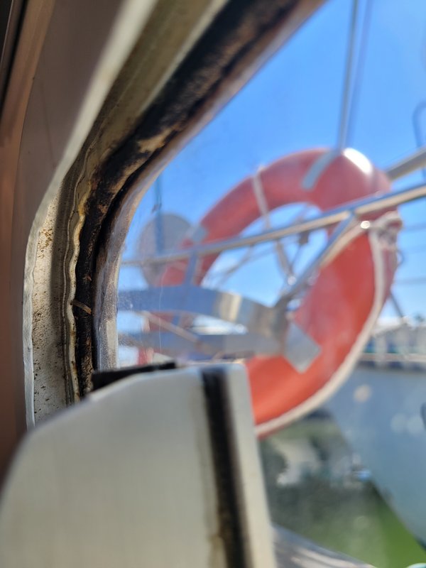 Viendo la última foto que has puesto, yo diría que esa ventana debe de salir hacia fuera. Una vez desmontada de la embarcación ya quizá puedas ver como cambiar las juntas.