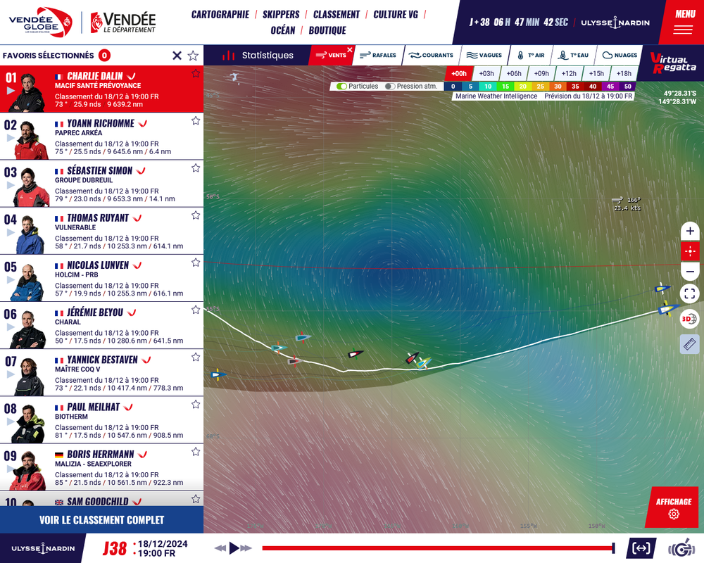 Dalin a vuelto a pisarle y ya se nota. Ahora le ha metido 32 nm a Richome y 48 a Simón, los tres lanzados a 23 nudos y haciendo en torno a 100 millas en las ultimas 4 horas.