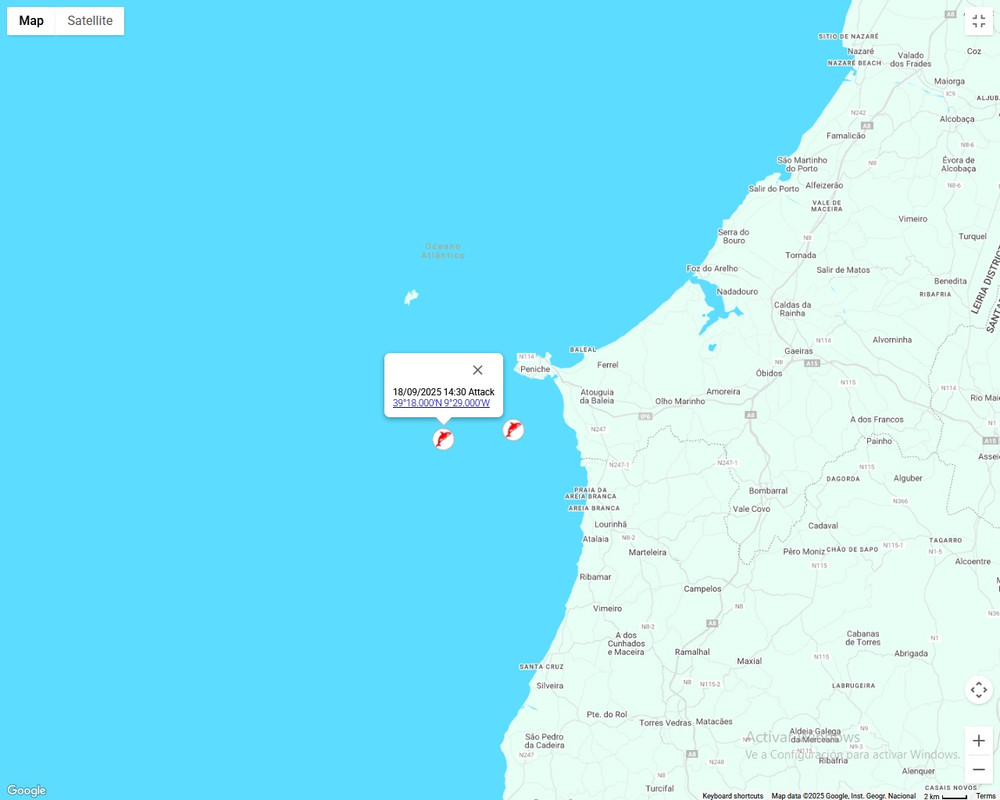 Otros dos hoy, uno a las nueve y media al NW de Espichel y otro sobre las dos de la tarde muy cerca de Cascais