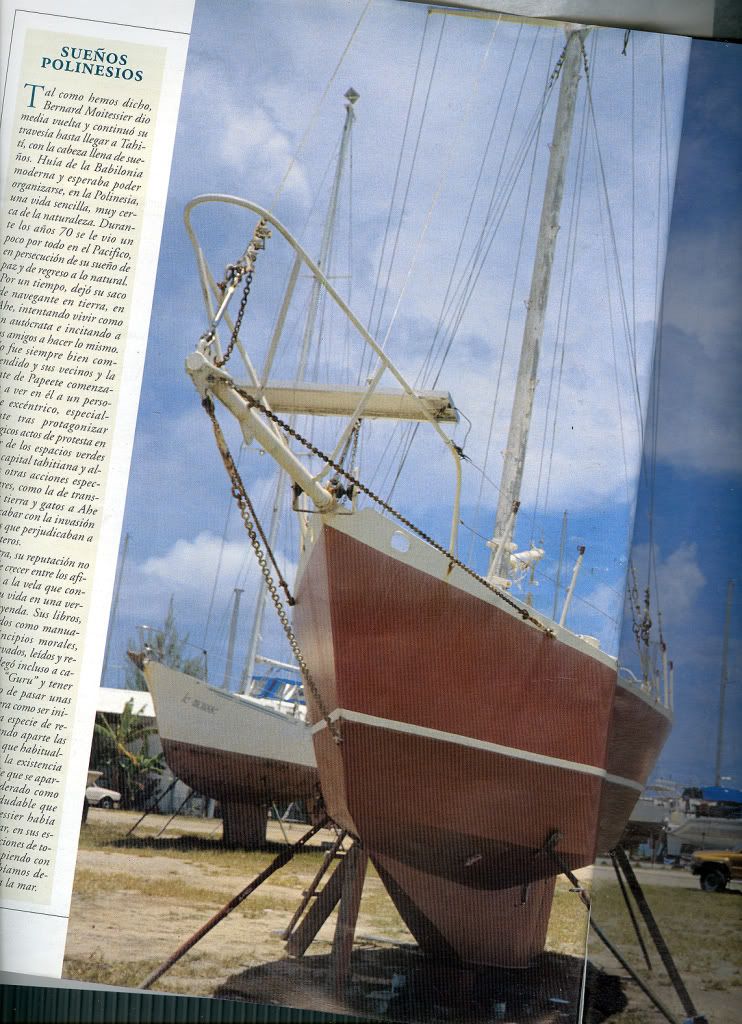 Extraido de la revista Skipper Julio-Agosto del año 93. Entrevistado en Febrero de ese año por Michel Martin en su choza de la isla de Raiatea, acompañado de una joven mujer (si es que era un maeztro).