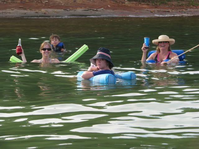 Con agua mas profunda el truco es sentarse en uno de esos cojines/flotador (son para tirar en caso de hombre al agua, parte del equipo de emergencia). La floatcion justa para mantener la cervecita por encima del aqua.