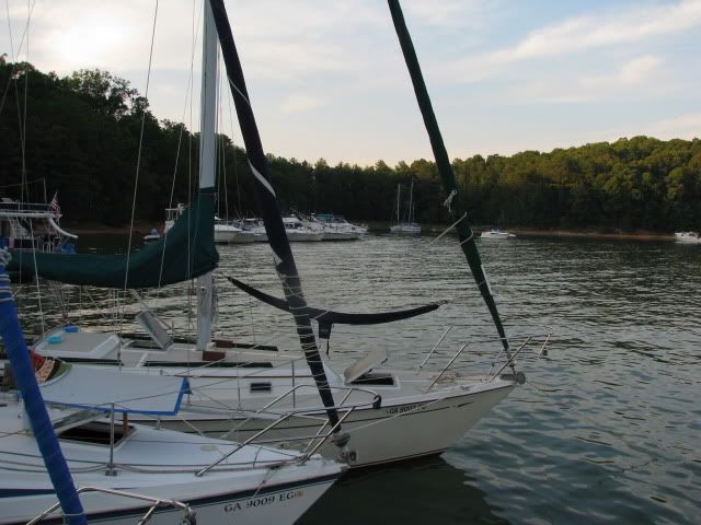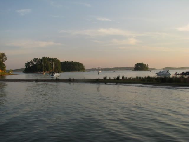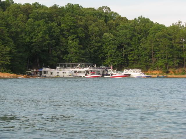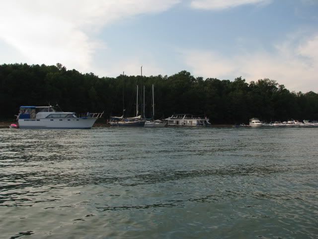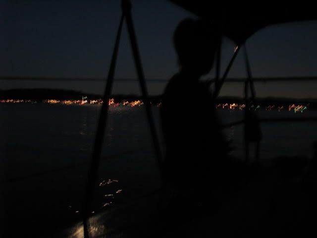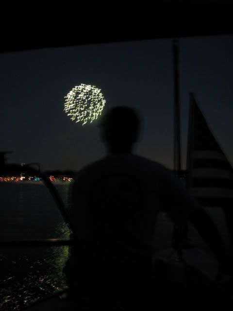 Normalmente se juntan cientos de barcos enfrente de el parque aquatico de lake Lanier Islands para ver el show de fuegos artificales. Este anyo los hemos visto desde nuestro fondeo en una islita cercana.