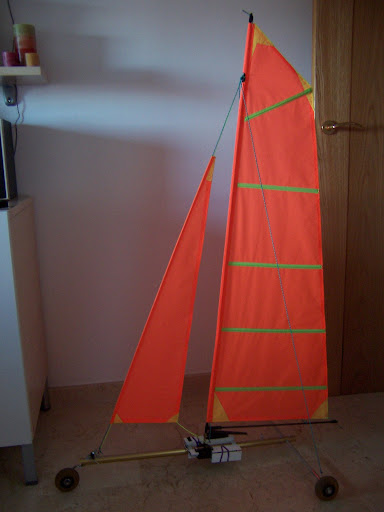 Hola, como yo soy de secano, secano, vamos que por no tener no tenemos ni estanques, hace ya algun tiempo me fabrique la version tierra de un velero: