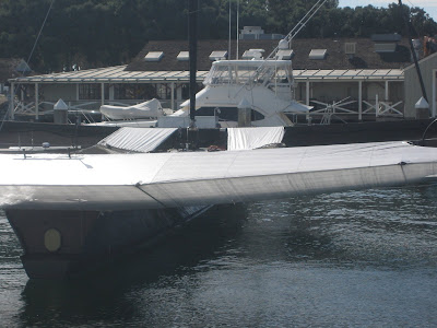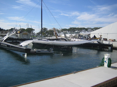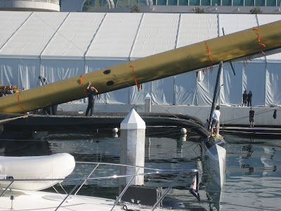Lo que está claro es que los del ORACLE están enseñando todo su armamento. Fijaros en este "carenado" del brazo de popa, al estilo de vela de ultraligero