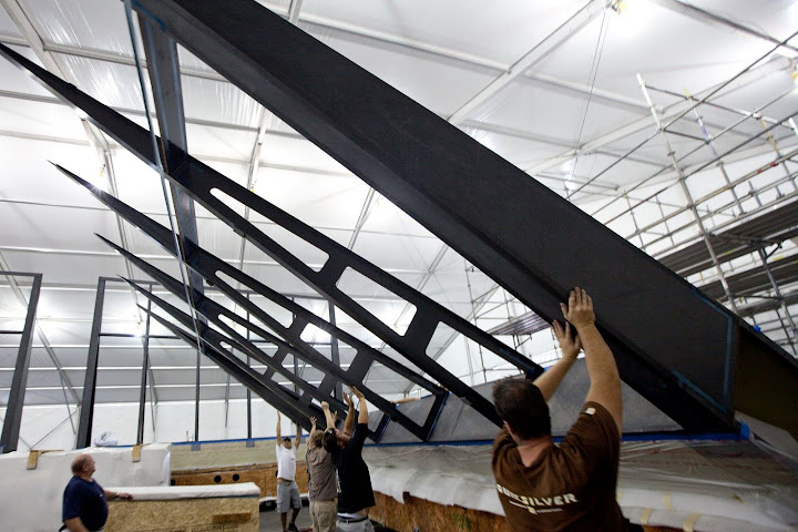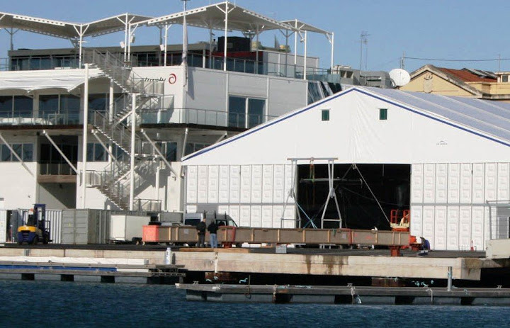 Esta foto está tomada hoy en el hangar de Alinghi.