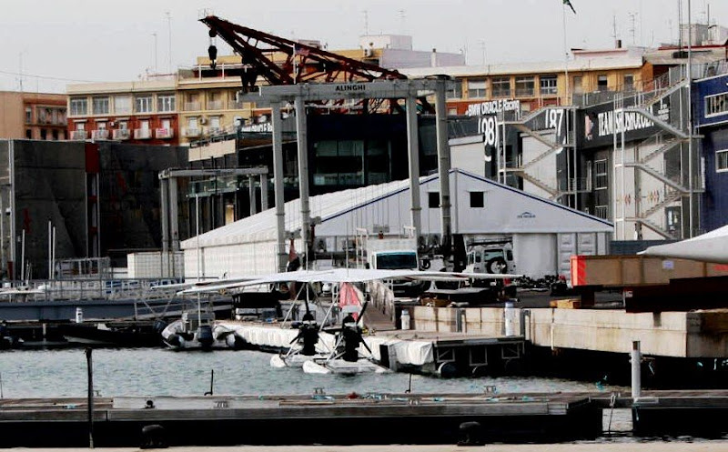 BMW-Oracle confía en empezar a entrenar en Valencia en menos de diez días pero dicen y alegan que su barco no puede entrar en la dársena de Valencia por seguridad, el responsable del ala rígida, la causante de los problemas de logística del equipo en ese sentido, James Sptihill, ha explicado que el ala tiene 600 metros cuadrados, una altura de 60 metros y diez toneladas de fuerza cuando está izada, por lo que "hay que tener mucha capacidad de maniobra, sobre todo en la dársena".