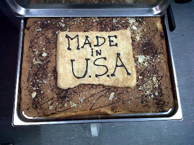 The cake - apparently made in the USA - came with candles and icing sugar from Switzerland.
