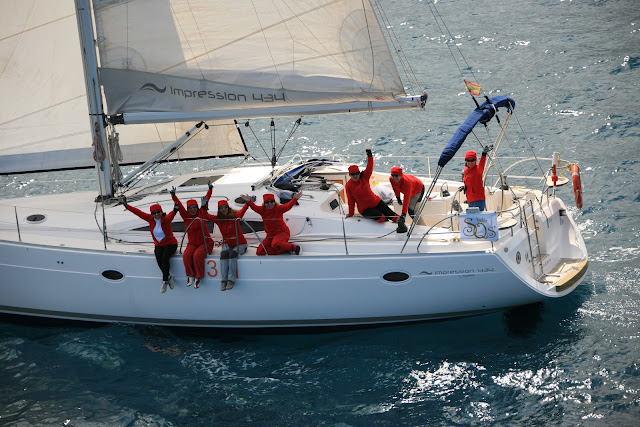 Mi tripu era mixta, cuatro hombres y tres mujeres, para mí la primera experiencia en regata, asi que preferí participar poco, para no molestar . A pesar de lo duro que fue, sobre todo la noche, y el frío que pasamos, me pareció una experiencia increíble, y la repetería sin dudarlo. Estoy todavía con sonrisa de felicidad pensando en los millones de momentos que he pasado con mi tripulación, mil instantes de risas... y de momentos compartidos.