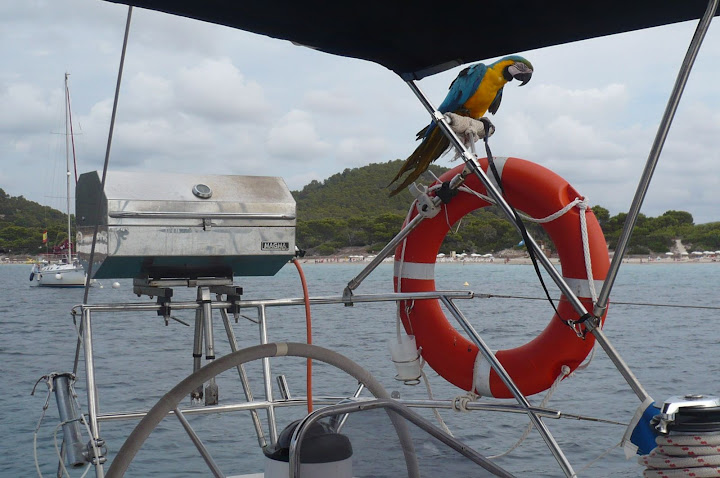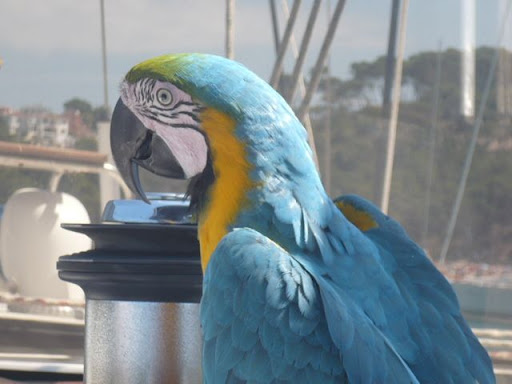 Vaya, veo que solo comentais el tema del perro, pero el post pone Animales, y nosotros siempre llevamos a nuestra mascota, Charly, es un guacamayo, (Ara Arauna) las plumas que pierde se las lleva el viento, alla donde vamos llama la atencion y gracias a el hacemos amigos enseguida, es limpio, lo llevamos en un soporte en el bimini, para que por gravedad, los """"regalitos """ se vayan al mar, en fin no tenemos ningun problema con la mascota, es mas os la recomendamos, os pongo unas fotos