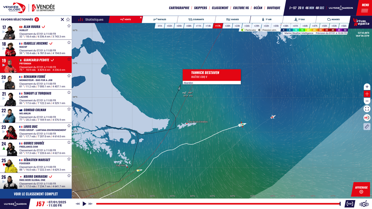 Hoy vuelve a salir Bestaven desde Usuhaia en solitario para terminar la vuelta al mundo fuera de competición..parece que su ruta podrá ser seguida en el tracker de la regata..