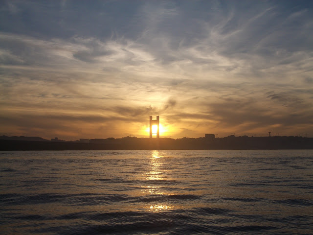 Y la ría enmarcada por los pilares del puente.