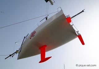 Se nota la mano de Corentin Douguet (ganador de la Transat 650 2005 y uno de los artífices de este barco), co-patrón del Fra 810 en la primera regata de este "peazo" de barco
