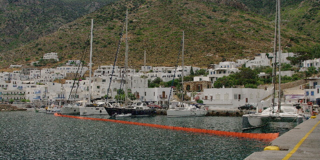en este hilo hay 2.539 entradas. Título de la entrada 07 y 08-06-2017 Atrapadosa en la Isla de Sifnos ![]() La siguiente isla que ponemos en nuestro camino es Sifnos, una agreste isla con poco refugio y donde llevamos marcado en el derrotero una bahía de buenas dimensiones y con un pequeño puerto, Kamares, que tal como nos viene sucediendo a lo largo de todo el recorrido, suele haber amarre, agua y electricidad, pero que dadas las diemensiones y que solo entran unos pocos barcos (8 en este caso). El precio es asequible, unos 7.50 Euros para nuestro barco y sobre º10 euros por conectarse a la electricidad y al agua. ![]() Algunos barcos que llegan despues de las cinco de la tarde se intentan abarloar al muelle del ferry pero son alejados por la autoridad del puerto y deben de fondear en la otra orilla de la ensenada, donde se puede estar sin mayores problemas. ![]() El dia está gris y caen esporádicas gotas de lluvia y aunque hay un autobús cada poco para visitar la ciudad o "Chora" de lo alto del monte, nos quedamos en el barco. ![]() Hay una soberbia playa de arena fina y parece un lugar para pasar unas tranquilas vacaciones desconectado de todo. Damos una vuelta por la aldea del puerto, donde hay un poco de lo mas imprescindible a nivel de alimentos. Hoy todo está descolorido por la falta de luz. Hasta los omnipresentes gatos parecen desvaídos como si se tratara de los ancestros del gato de Cheshire. Hay uno en concreto que nos sigue a donde vallamos y se coloca siempre de forma que aparezca en todas las fotos que intento sacar. Y aunque soy mas perruno que gatero, este se ha ganado estar aquí. ![]() A la mañana siguiente, cuando vamos a seguir el viaje, nos encontramos con que estamos rodeados por una de esas vallas de protección de vertidos. El día anterior hemos visto que le echaban una bronca al catamarán que tenemos a bavor, pues el motor no le quemaba bien y dejó una pequeña mancha de gasoil o aceite salidos por el escape del motor. Pero se trata tan solo de una práctica, dirigida por la guardia costera para poner y quitar la protección. así que tenemos que esperar casi hasta las 11 del día para poder salir de nuestro encierro. ![]() Desde Sifnos saltamos a la isla de Milos, Un viaje de unas 25 millas que hacemos en menos de cuatro horas impulsados por un viento por la aleta de unos 10/12 nudos. https://3.bp.blogspot.com/-mp-AcIpeu...40/Captura.jpg Al fondo de la gran bahía de Milos está el puerto principal de la isla, donde los muelles están totalmente llenos de barcos de chárter diario de todo tipo, pero hay un pantalán flotante donde en su cara externa se puede amarrar y quedaron sitios vacíos, aunque no obstante unos días después , cuando empezó a soplar el Meltemi se cubrieron todas las plazas y un buen número de barcos la tuvieron que pasar fondeados en las cercanias. ![]()