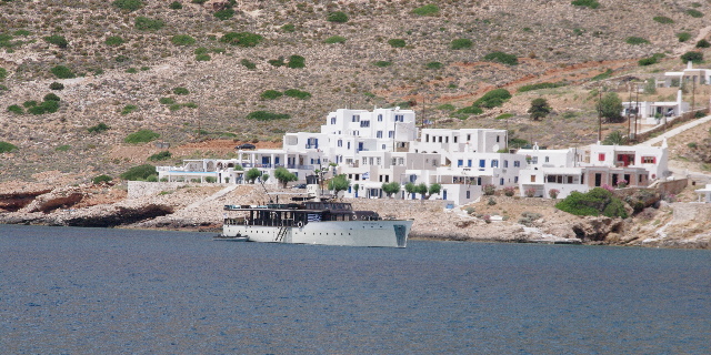 en este hilo hay 3.000 entradas. Título de la entrada 14-06-2017 Milos a Folegandros ![]() El recorrido hacia el Este nos conduce en primer lugar a una zona donde Milos es tangente a otras dos islas, Kimolos y Polyaigos. en esta segunda isla hay un fondeo de los espectaculares, donde la lengua de tierra que una Manolonisi con Polyaigos, ofrece un lugar idílico para el baño y el snorquel. Pero tiene una trampa para incautos. el fondo está solo a 1 metros de profundidad y no se puede pasar de una a otra parte de la lengua. El día que nosotros nos acercamos a sacar fotos, un velero de charter, quizás seducido por nuestra posición y la de otros dos barcos que estaban en la otra ensenada, embarrancó a toda máquina al intentar saltarse el obstáculo. ![]() Llegar a Folegandros no supone ningún problema con un día de calma chicha como el que nosostros tenemos y en seis horas cubrimos la distancia, llegando con el puerto casi a rebosar. solo quedaban 2 de las ocho `plaza disponibles. Eso si, con marinero -cobrador-aguador-recepcionista. El resto de los barcos tienen que fondear, pero afortunadamente el tiempo y su previsión son perfectos para pasar la noche a la gira. ![]() El puerto tiene una hermosa playa de arena y hay un gran número de embarcaciones pequeñas, las aguas son transparentes. Una delicia. ![]() Preguntamos a los pescadores y nos dan los horarios de los autobuses que casi cada hora y hasta altas horas de la noche te llevan a la Chora y al Castro, ya sabeis, la autentica ciudad de la isla, que como siempre está a cinco kilometros y en lo alto de una colina. ![]() Las formas y colores del Castro son los típicamente griegos, pero combinados de forma natural, sin el artificio que hemos visto en algunos otros pueblos. ![]() Desde la chora hay unas vistas espectaculares y se puede divisar prácticamente todo el perímetro de la isla y por ende tener el control de quien entra y sale. ![]() Pero la fiesta del verano está cerca y las calles se van invadiendo de mesas y sillas a la sombra de limoneros y parras, buscando el frescor de la tarde que aún no ha llegado cuando nosotros visitamos el pueblo, que duerme en el letargo de la siesta en los interiores de las casas. ![]() Coronando la chora hay una imponente ermita/iglesia a la que se sube por un número de peldaños que se acerca al infinito, pero -que los Popes me perdonen- no encuentro justificación alguna para hacer esa peregrinación, que seguramente te acercará mas a tu dios, por la vía del infarto. ![]() Vuelta al bus y al puerto, que mañana nos espera una larga travesía ![]()