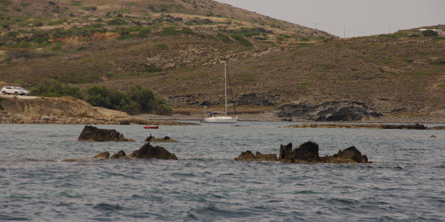 en este hilo hay 3.802 entradas. Título de la entrada 16y17-06-2017 de Ios a Kea por Syros ![]() El siguiente salto lo hacemos hasta la isla de Syros, a Hermiopoulis, la capital de las islas Cicladas, donde conocemos dos grandes tiendas de efectos navales y probaremos fortuna. Salimos muy temprano, las 05:30, para tratar de llegar con las tiendas abiertas, aunque la previsión del tiempo es de norte y puede que el paso entre la isla de Nasos y la Isla de Paros se nos ponga un poco cuesta arriba. ![]() Hemos dormido en una cala señalada por el derrotero del Imray que no es mas que una playa donde entra el mar. A la mañana descubrimos que hay unas pequeñas ensenadas que están un poco mas protegidas del mar de fondo. Así y todo hemos dormido bastante bien, pues la noche es tranquila, el ancla estaba muy firmemente cogida y nosotros muy cansados. Al pasar la punta mas al norte de la isla de Ios vemos la que hasta ahora es la casa unifamiliar mas grande que hemos encontrado en Grecia. El jardín está todo plantado de palmeras, que es algo poco usual . Nos vamos sin conocer a fondo esta isla. ![]() En Ermiopouli, donde llegamos a la hora de comer, recorremos todas las tiendas de náutica y nos quedamos muy sorprendidos de que ¡¡no saben que es un cargador de baterias¡¡ Uno de ellos me ofrece despues de enseñarselo en uno de sus catálogos pedirlo a Atenas, pero con el domingo por el medio, no llegaría hasta el miercoles y además es de una marca desconocida y apenas tengo información. Y con tres parques de baterias, de diferentes tipos, ( ácido y AGM) necesito un cargador potente y con control de carga. Pero además las previsiones dicen que la próxima semana comienza a soplar el Meltemi con bastante fuerza y nos puede dejar atrapados aquí. Así que el sábado saldremos hacia Atenas. ![]() La salida de Hermiopoulis es precipitada por que el puerto va a quedar cerrado al tráfico para una carrera de triatlon, así que tráfico significa que tampoco se puede navegar por el puerto. Pero nos hemos hecho amigos del comodoro /marinero/cobrador que nos consigue permiso para salir. Superada la punta norte de la isla de Syros tenemos un través con vientos de fuerza 4 que nos hace caminar muy rápido. ![]() La noche del sábado la pasamos en una cala preciosa de la isla de Kea, que descubrimos cuando recorriamos la isla con el coche, la temperatura del agua está subiendo y hago el intento de meterme en el agua a darme un baño, que no pasa de un tímido chapuzón. ![]()