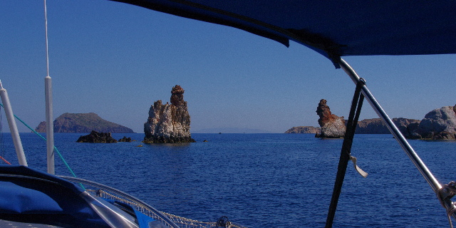 en este hilo hay 3.550 entradas. Título de la entrada 15-06-2017 de Folegandros a Ios pasando por Thira ![]() Desde que salimos de Milos, llevamos una avería importante. La rotura del cargador de baterias desde la red, Un Sterling de 40 watios y tres salidas que llevaba el barco desde su salida de fábrica. Sabemos que eso nos obliga allegar a un punto donde comprar uno nuevo para sustituir y lo vamos a intentar en Hermopouli o en todo caso en Atenas. Pero así y todo no queremos quedarnos sin darle un vistazo al destino mas buscado de Grecia. SANTORINI ![]() Realmente el nombre de esta isla de origen volcánico- de hecho es los restos de un volcán - tiene por nombre Thira. y las fotos que son famosas y casi un símbolo de Grecias son de una ciudad que tampoco es Santorini, sino Finikia. Y la tercera dificultad de la isla es la ausencia de un sitio seguro donde dejar el barco solo durante el día y noche necesario para disfrutar de la isla en su conjunto. Nos habían hablado por varios caminos de la existencia de una nueva marina donde dejar el barco, pero después de rodear la isla solo vimos una marina que ya estába marcada en los derroteros en la costa sur. La marina de Vlikadha, peo solo tiene un calado en la entrada de 1.50 metros, insuficiente para nuestro barco. Además está llena de catamaranes que dan el servicio de playas y vueltas a la isla. ![]() Sin embargo lo que pudimos ver es espectacular y promete, así que desde aquí recavo la información de donde y como hacer para visitar esta isla a fondo. ![]() De momento nos vemos obligados a dar una vuelta por el crater, sacar algunas fotos y proseguir nuestro viaje, pero sabiendo que dejamos en el tintero algo bueno y que merece una nueva travesía. ![]() Aprovechamos para seguir viaje y hacemos noche en nuestra marcha hacia el norte en una playa deliciosa de la isla de Ios. ![]()