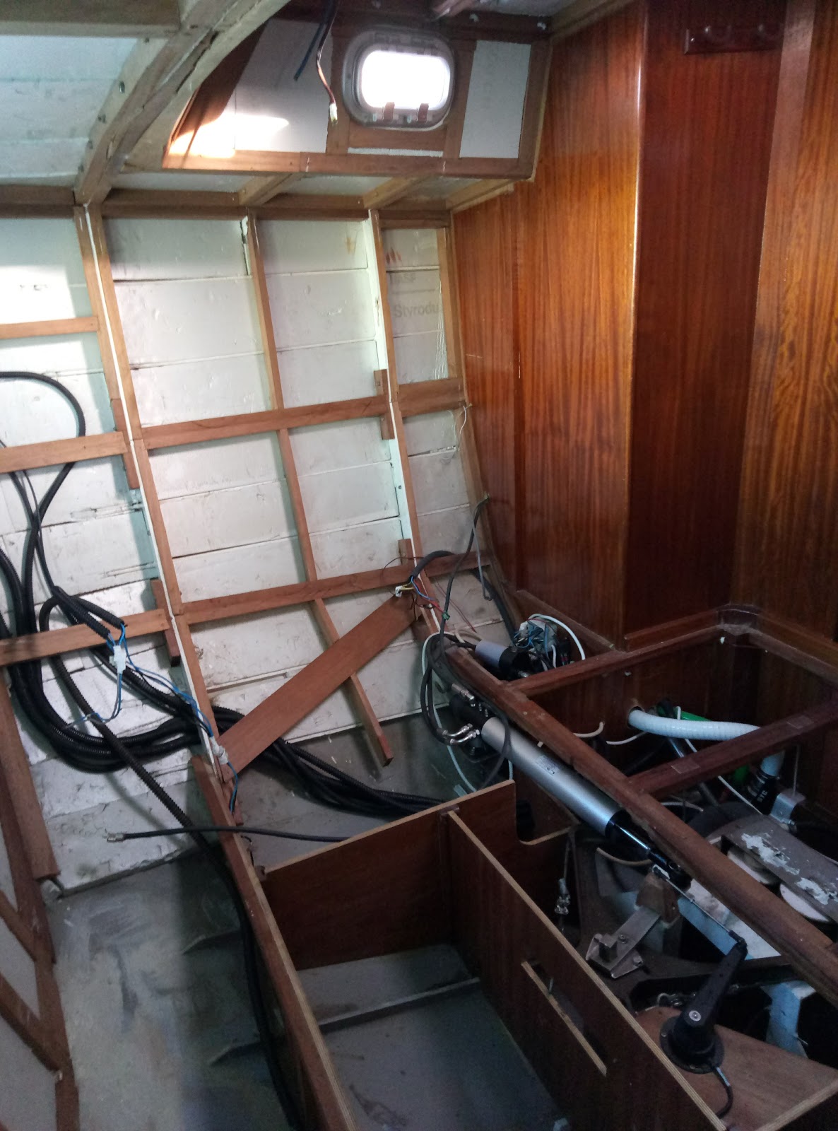 Pues con el famoso "y ya que me pongo" hoy terminó asi la cosa... ![]() Pero el descalabro tiene su explicacion... Hay varias... Una es que quiero conocer cada rincon del barco. Otra es que voy a lacar los techos en blanco. Y la tecera, y por la que empezó todo, es la parte eléctrica. Esto incluye cables de antenas, placas, piloto, etc, etc, etc... No me gustaba nada como estaba... Se habian hecho muchas chapuzas y no estaría nunca tranquilo hasta tenerlo resuelto... Asi que como dicta el dicho... El toro por los cuernos... Chapuzas por doquier... ![]() ![]() ![]() ![]() Me ha quedado la mano de sacar tornillos que no veas! ![]() Ya veras para poner todas las molduras otra vez! ![]() Y voy a aprovechar para lijar y barnizar fuera del barco... Quedara mejor y mas limpio... Alguien tiene un garaje o una esquinita en una nave que me deje currar unos meses? Pago con paseos en el GA! ![]() ![]() ![]() ![]() Pero no todo va a ser malo... Mas bien lo contrario... Todas las reformas que quiero hacer valen 4 duros... Lo gordo y lo importante de verdad esta mas que bien... El casco por dentro esta impecable... Ni una mota de óxido! Y se (y se ve) que tiene sus capas de epoxi! La carpintería es simplemente una obra de arte! ![]() Unos macizos de teca que alucinas... ![]() El piston hidráulico del piloto es gigante! ![]() Y lo que mas me ha gustado es que es todo desmontable! Voy poco a poco... Pero sin pausa! Un saludo. |