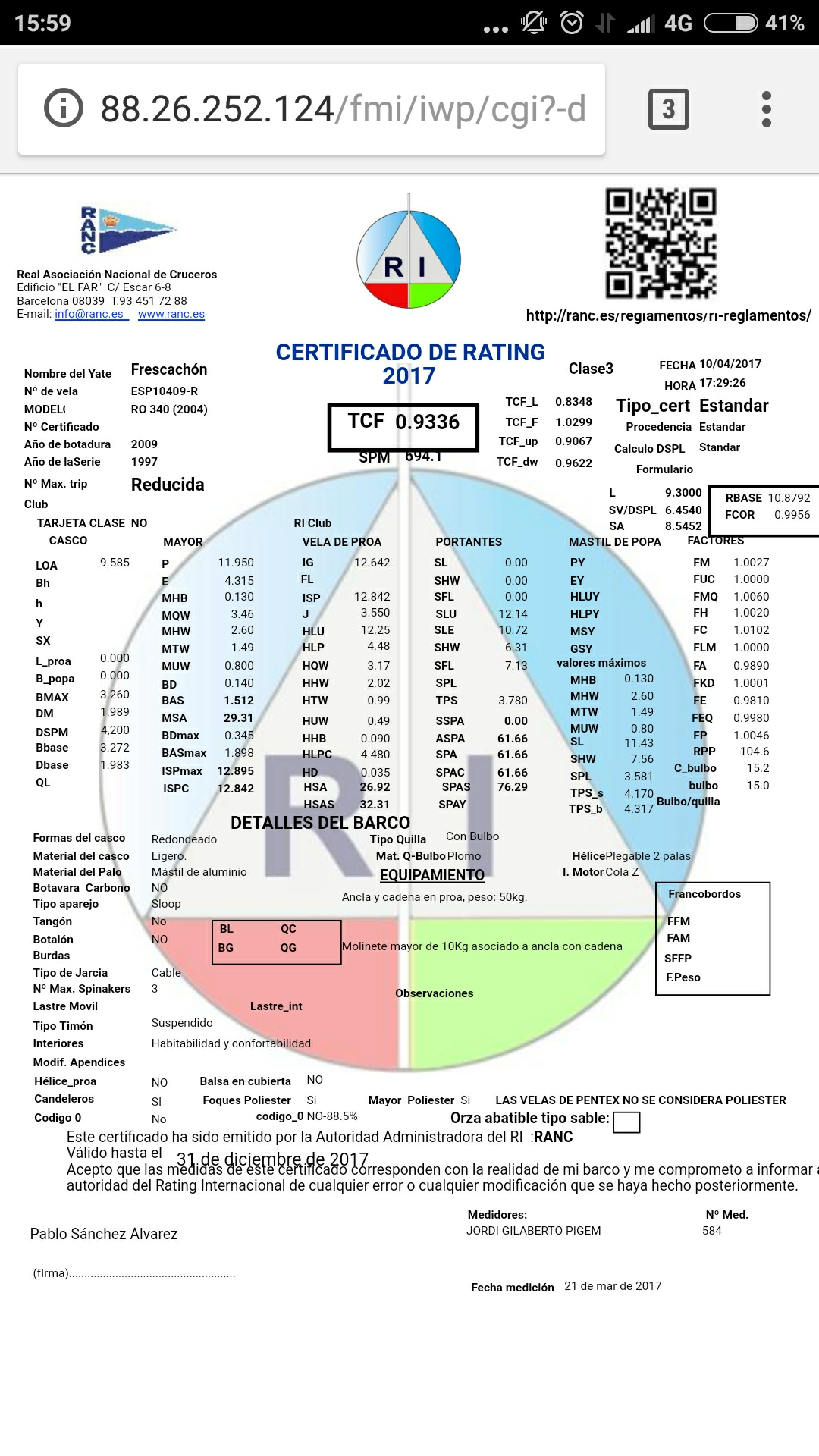 - Los obenques bajos no deberían estar demasiado tensos; incluso pueden estar ligeramente flojos, ya que a sota comienzan a bailar ligeramente antes que los medios y estos a su vez algo antes también que los altos - No sé si al back se le podía dar mucha más tensión. Estaba en el típico punto en el que empieza a costar, con lo que no pasaría mucho de ahí. Algo más tensión a driza se podría, y sobre todo a cunningham, pero eso adelantaría la bolsa sin probablemente reducirla demasiado por su parte media - Entiendo el punto de usar un sable más flexible, pero no uno más rígido; por qué piensas que ayudaría? ![]() PD - Os dejo otra foto desde otro ángulo, aunque es con menos viento y y eso es ponérselo más fácil a vela... Es de hace 8 meses, con unas 1200 millas menos ![]() |