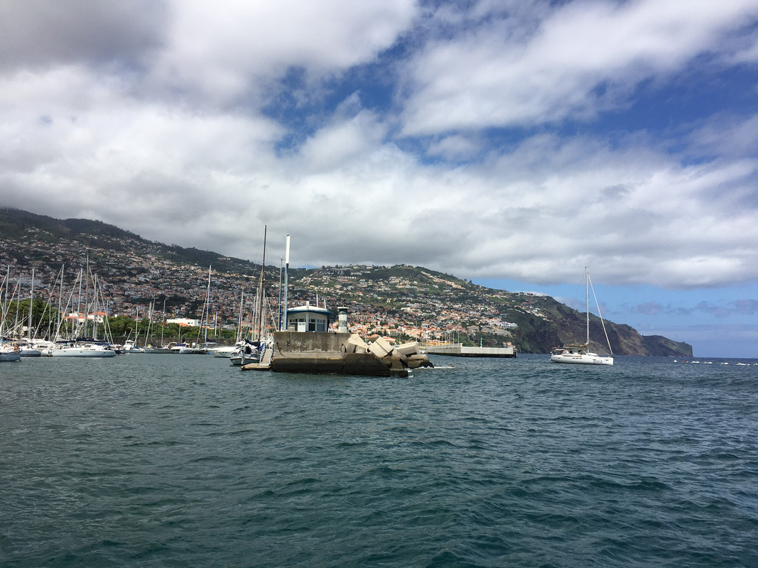 Avistamos la roja y verde del puerto. En la bocana algunos veleros fondeados. ¿A ver si no hay sitio pensé? Como sea así es una putada, aunque puedo esgrimir la avería para forzar a que me den amarre. A babor está el puerto para los barcos grandes, para el ferry a Porto Santo y los cruceros que frecuentan la isla. Aquí también había algún velero fondeado. A estribor tras una pequeña entrada, el puerto deportivo mas pequeño y abarrotado. En la entrada una pequeña torre de control y bajo ella el muelle de espera al cual me amuré. Pedro bajó y me lanzo los cabos. Amarré el barco y apague el motor. Eran las seis de la mañana. Habíamos llegado a Funchal