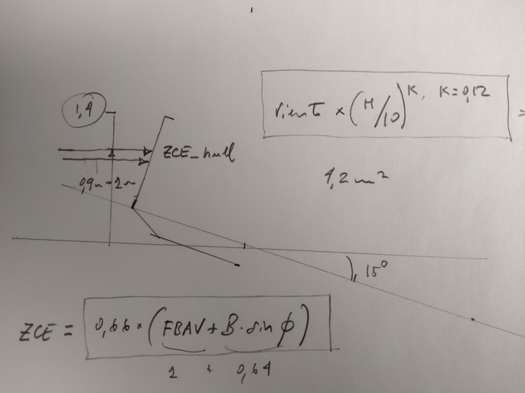 ![]() Visto así, dividimos el Cascarón en dos trozos Y a la parte de proa le damos un Coeficiente normal/perpendicular (CN) de 1 que es bien razonable Entonces va y resulta que sale exactamente lo mismo que lo que calcula ORC_VPP: 124 Newtons de Aero-Arrastre del Cascarón en la dirección del Rumbo del Velero Peeero ... resulta 202 pedazos de Newtons de Aero Fuerza Lateral del Cascarón No sé, lo miraré de nuevo pero parece que ORC calcula "Drag" del Cascarón, pero no calcula "Lift", es decir el Cascarón produce Sustentación Aquí hay algo que no encaja . |