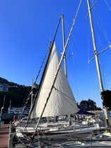 Para ceñir con viento duro necesitas algo así como una vela de buen gramaje, corte plano y dimensión adecuada. Prejuzgo que la vela de la imagen cumple la última condición, pero no las otras dos; y diría, además, que no fue cortada para ese barco, lo que puede o no ser un inconveniente insalvable, y -de nuevo, tocando de oído- me temo que lo es, porque parece que se le atragantan los obenques y eso es un jaque a la capacidad de ceñida.