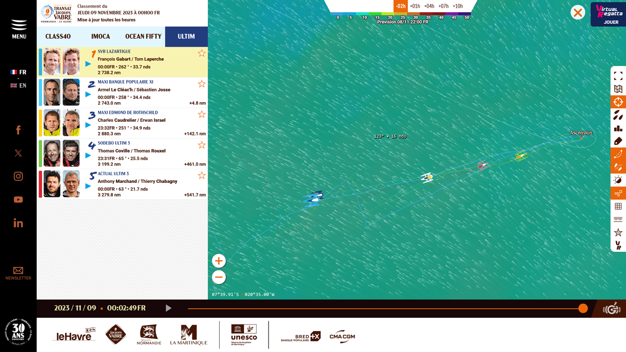 A mi me parece mucho mas interesante la regatta de Imocas . mas aun ahora que la flota se han dividido con dos estrategias opuestas . Adelante los monocascos