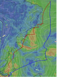 "El plan para los próximos dos días es el siguiente: abandonas el sistema de baja presión y te diriges hacia la dorsal, que se ha debilitado considerablemente y que deberías cruzar sin demasiados problemas. En esta situación, los planes de ruta suelen ser más ambiciosos de lo que realmente es. Después, habrá un período de vientos más suaves en el que tendrás que avanzar antes de que el viento vuelva a arreciar. El objetivo de los planes de ruta es encontrar el mejor canal en la zona de vientos suaves y posicionarte para el tramo de ceñida que seguirás cuando se acerque el sistema de baja presión que desciende por la costa sudamericana. Parece bastante probable que tengamos que seguir la ruta que nos acerque más a la costa."