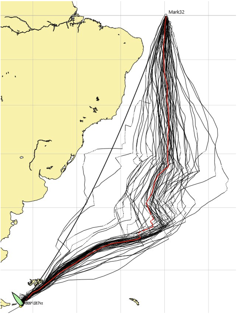 Pero así fue la elección dejando las Malvinas por Br. adentrándose en la ruta oriental llegando ayer a alcanzar una ventaja de 500 millas.
