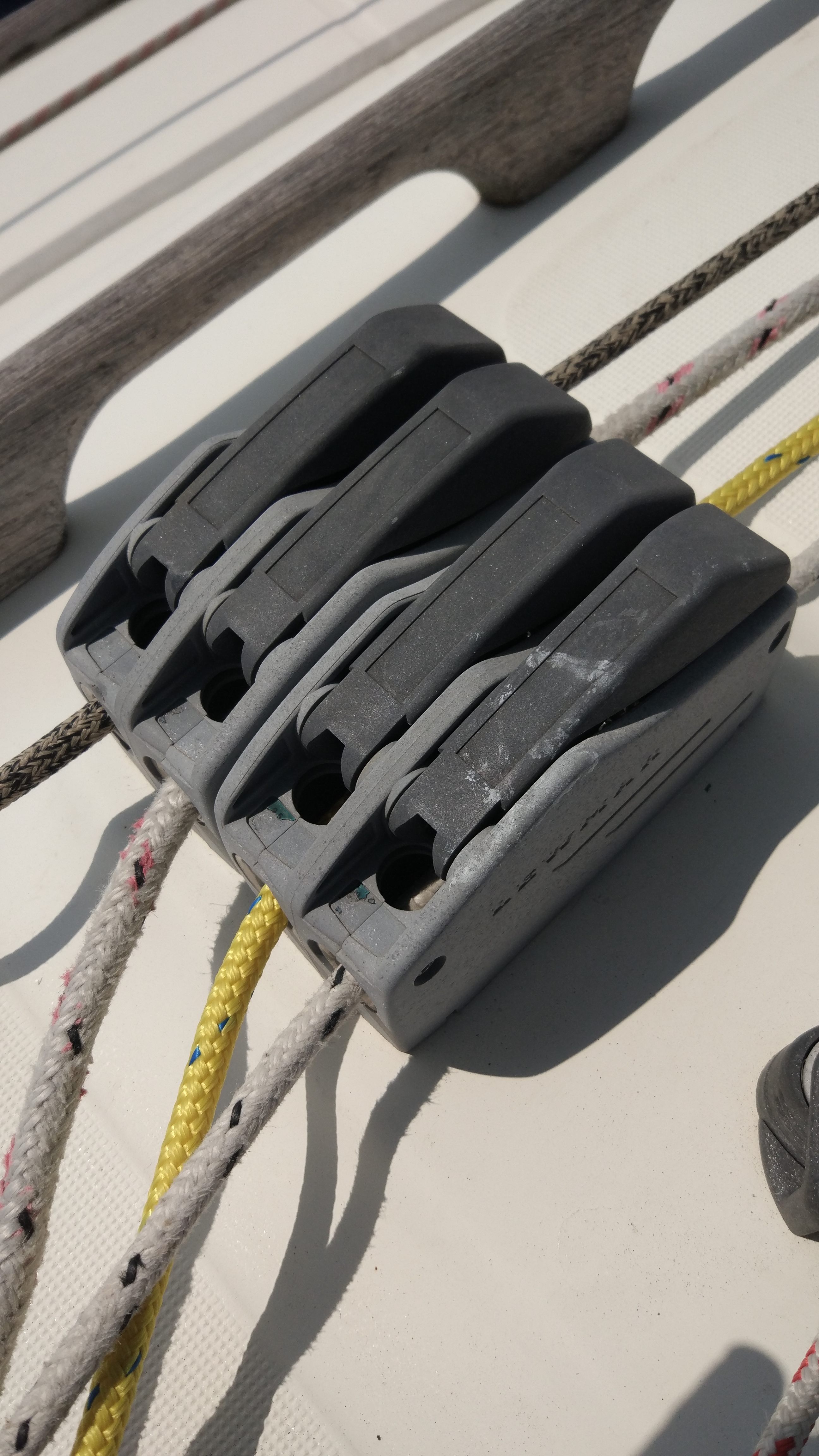 Antes de nada, comprobaría el buen estado del patín comparado con los demás, no fuese que está desgastado. No sé qué stoppers llevas, pero seguramente encontrarías las piezas de recambio. Luego viene lo de hacer una sencilla maniobra que se puede hacer con muchos stoppers: antes de soltar el cabo del winch, con un dedo presionar el freno del stopper sobre el cabo. Eso normalmente limita en gran manera los centímetros esos que resbalan. Finalmente queda, antes de cambiar las drizas por otras (cosa que me sabría mal por ti, pero que sería una alegría para mi ![]() ), poner una funda en el trozo de trabajo del cabo en el stopper. No es por el coste, pero tiene su trabajito.Saludetes,