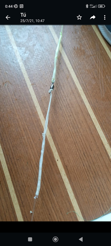 Estoy pensando en quitar los quitavueltas. Ahora los llevo como unión entre la madre y el bajo. El quitavueltas va unido a la madre con nudo y luego el bajo mediante gaza. El tema es que el quitavueltas no pasa por la puntera así que el bajo lo tengo que meter a mano.