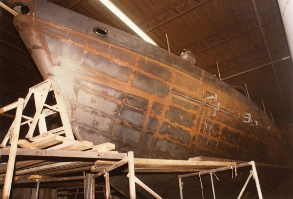 para alinear el barco es prefecto, las cuadernas no se marcan en los costados, si te fijas en un dragaminas o destructor de hace algunos años entenderas lo que te digo y ante un impacto este sistema absorve el golpe mucho mejor, ademas de la propia dureza del acero, 42 kg/cm2, cada palmo tienes un longitudinal creo recordar de 30x5 mm, una maravilla.![]() |