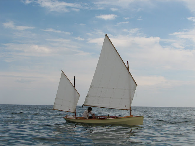 Barcos que me inspiran: El primero y mas importante, es el ONAWIND BLUE de Ben. Un gran ejemplo del tipo de navegación con la que disfruto y que Ben consigui demostrar, empezando por construirse el mismo un barco ligero, la primera unidad construida a partir de los planos de libre distribucion del Light Trow que podeis encontrar en el blog de Gavin Atkin's. Ben y su barco, han navegado muchas millas, pero la aventura mas sonada fue salir de la costa valenciana, dar la vuelta a Ibiza y llegar otra vez a la costa peninsular en la zona tarragonina. Todo ello a vela y remo. Os recomiendo ver si no lo habeis visto el reportage de Talassha "Els horitzons den Ben" Aprovecho para mandar fuerzas a Ben para que logre vencer a su actual enemigo. Sobre su barco, ha demostrado su valia y ser seguro para navegar en mar abierto, pero no creo se pueda despatchar como categoria C. |