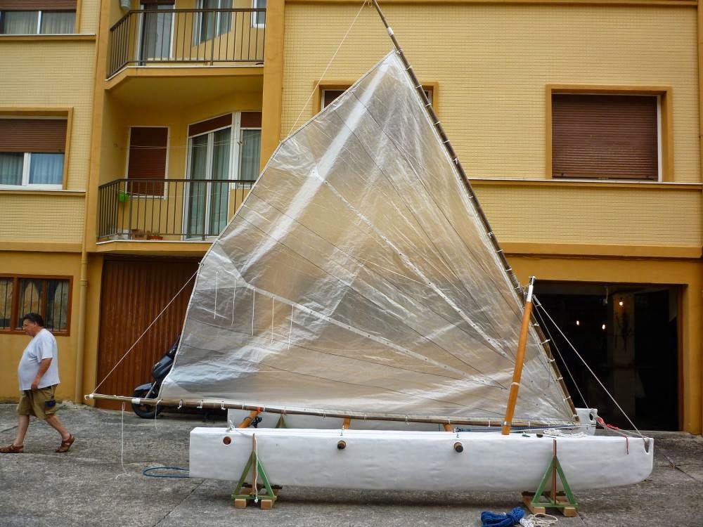 Tuve que modificar el aparejo y añadir unos baupreses para que la cosa funcionara. después construí otro prao de 6m de eslora. Teóricamente un hermano mayor. pero este no quería ceñir de ninguna manera. Así que tuve que retrasar el aparejo. Por eso pregunto a los del Cata Blanco como se ha comportado. Si ciñe bien con poca pala. Tonitutusaus |