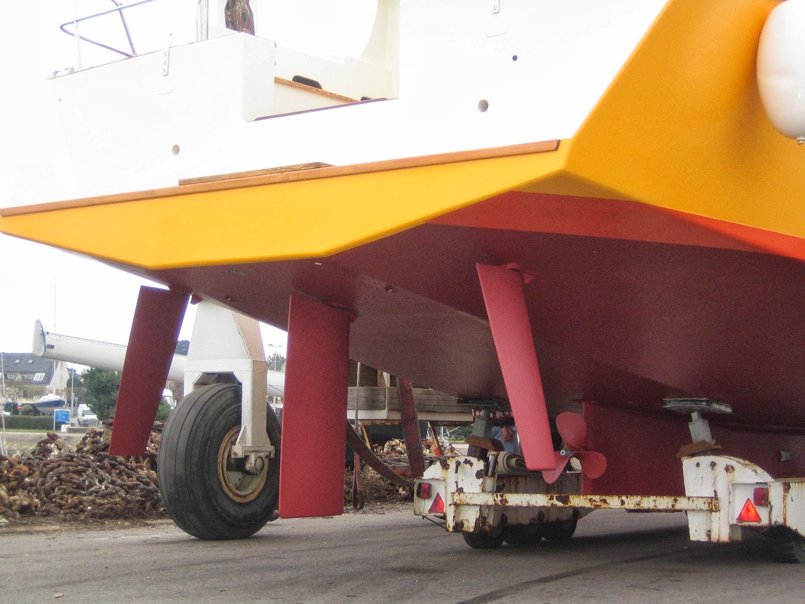 ![]() aquí tenemos los mimbres para un velero oceánico la pena es que a estos veleros le chimpan encima, le ponen encima, el aparejo de un velero de regatas de los años 60 si se le pusiera la jarcia de un catamarán y gracias a que el lastre se ha separado de la orza para ceñir (y liberada la orza del lastre se puede situar la orza donde sea) resultaría un magnífico, cómodo y seguro velero oceánico que además sería capaz de maniobrar en un puerto estrecho |